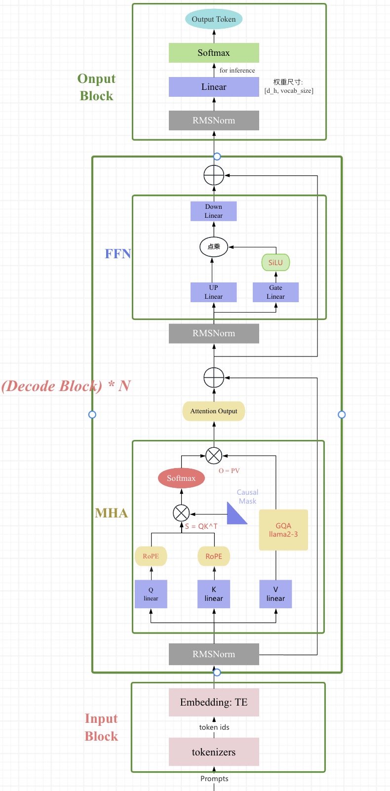 本文主要从模型推理角度去总结 llama1-3 模型论文和报告,因此没有涉及到数据集处理、模型训练及试验报告的细节,更多的是介绍了 LLaMA 模型的主要思想以及模型结构的细节。